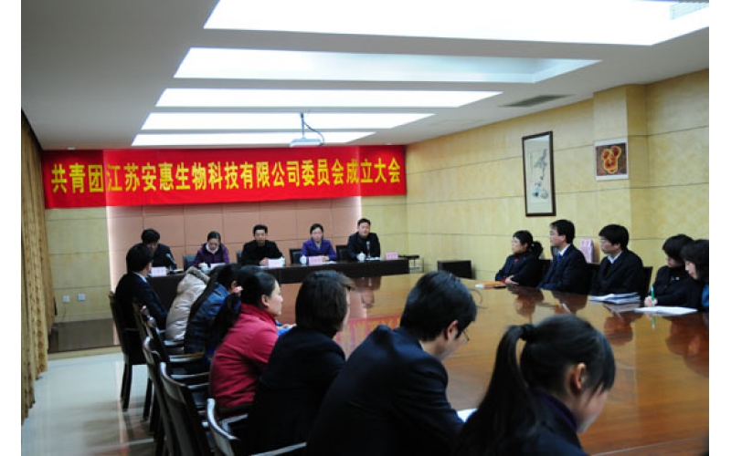 2009年3月3日,共青團(tuán)江蘇安惠生物科技有限公司委員會成立大會在安惠公司中會議室舉行。共青團(tuán)南通市委副書記趙新葉、共青團(tuán)南通市委組織部部長顏海燕、共青團(tuán)開發(fā)區(qū)委書記李宏圖等出席會議。