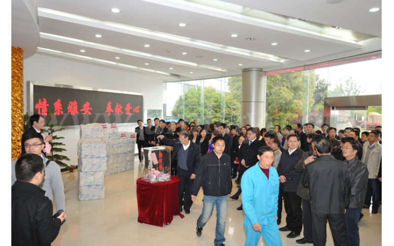 2013年4月22日,安惠公司以簡(jiǎn)樸的形式組織了“情系雅安 奉獻(xiàn)愛(ài)心”捐贈(zèng)儀式。董事長(zhǎng)陳惠代表安惠公司捐出20萬(wàn)元人民幣和價(jià)值100萬(wàn)元的物資。安惠公司員工也積極響應(yīng)自覺(jué)捐款,短短幾分鐘內(nèi),安惠員工累計(jì)捐款105543元。